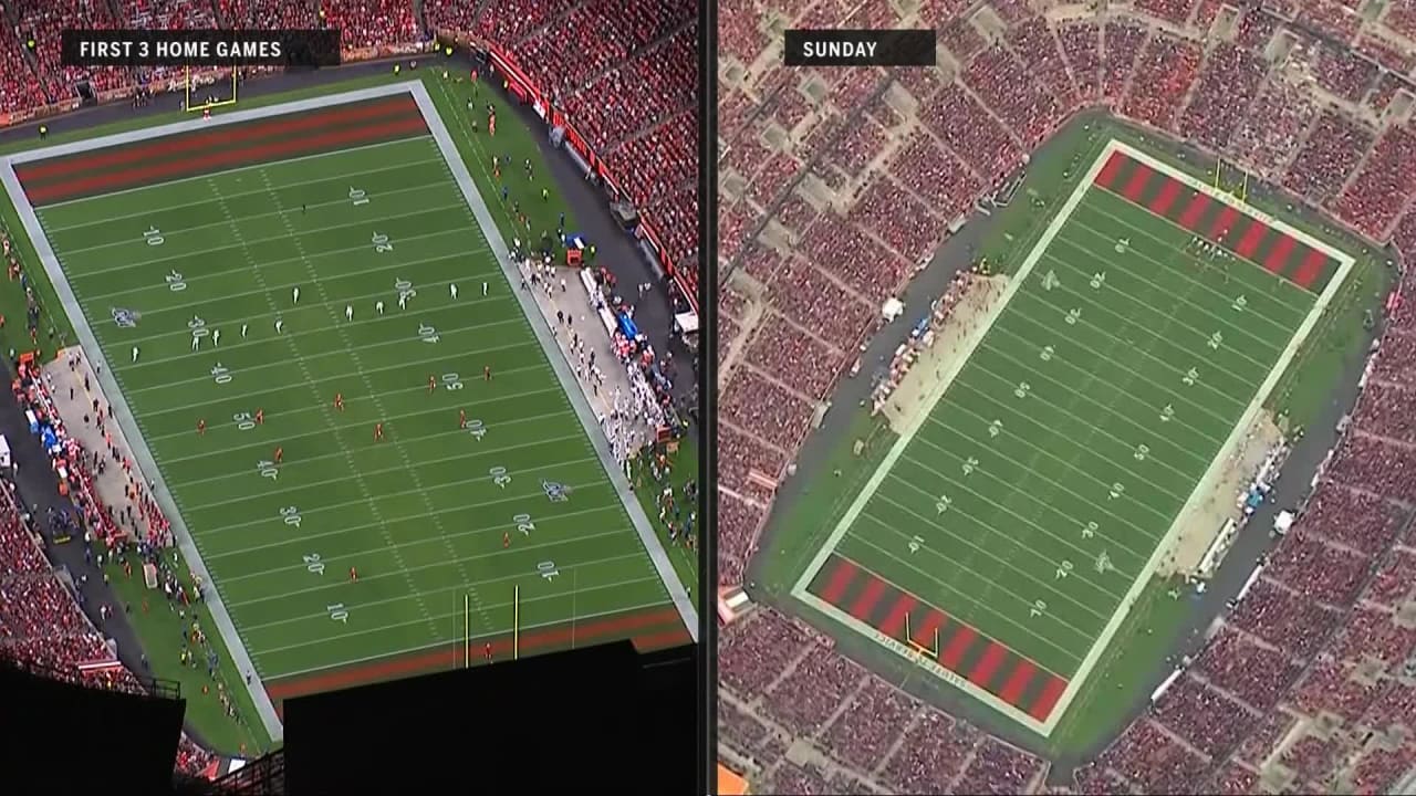 Live webcams around app state You get 1 large graphic for the end zone measuring approximately 17 1/2 x 3 and one smaller graphic for wrapping the goal post measuring 7/8 x.