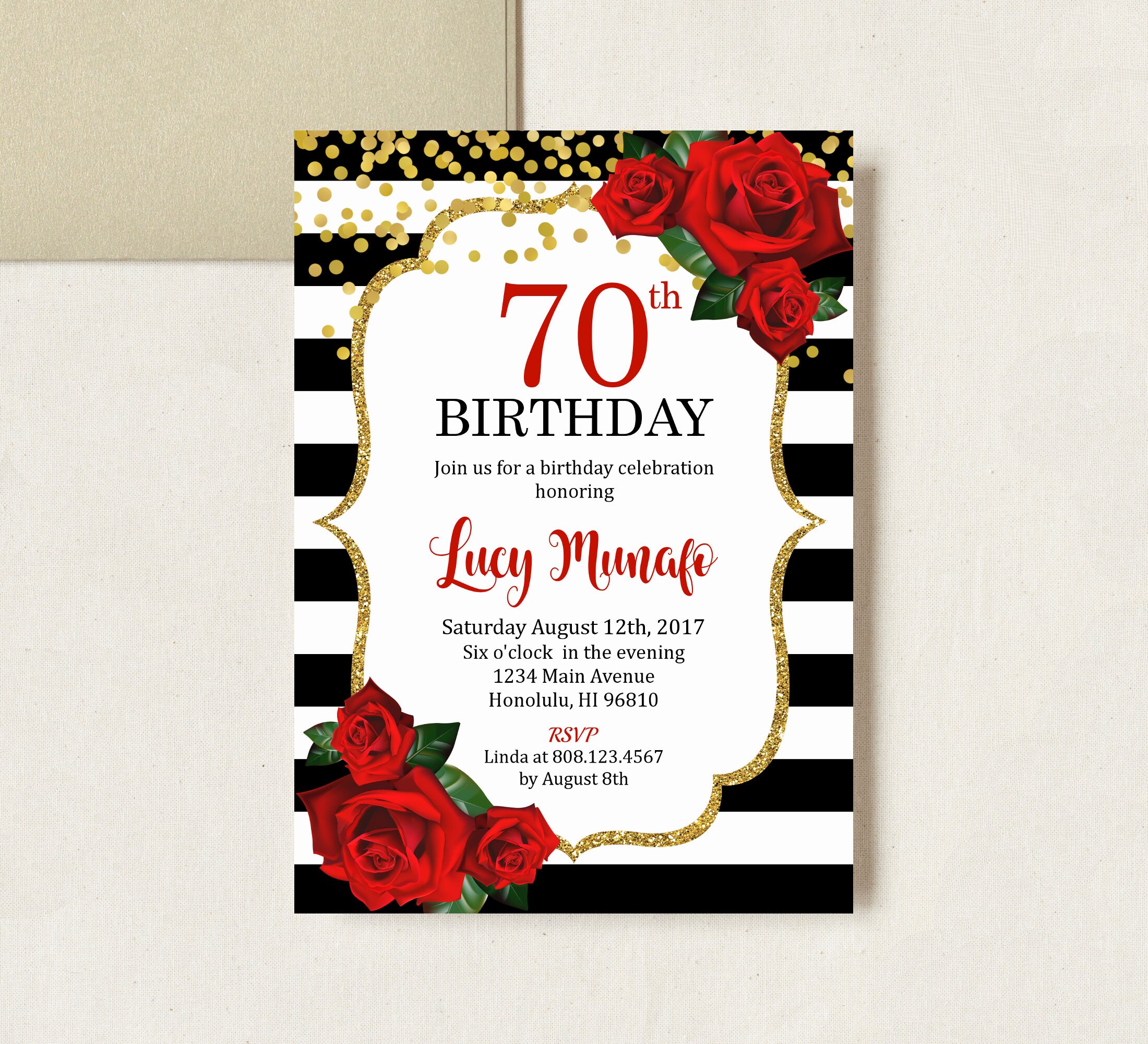 70th Birthday Invitation Women Birthday Invitation Floral Red Etsy